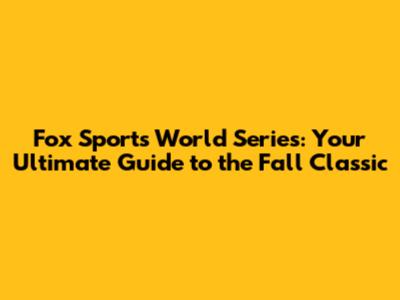 Fox Sports World Series: Your Ultimate Guide