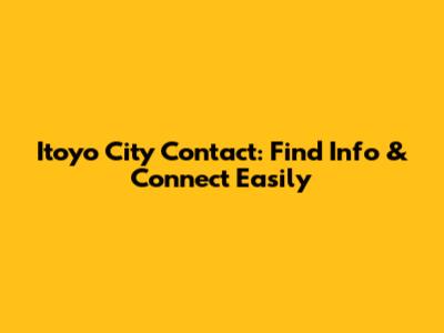 Itoyo City Contact: Find Info & Connect Easily