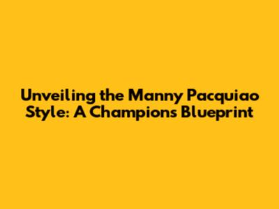 Unveiling The Manny Pacquiao Style: A Champion's Blueprint